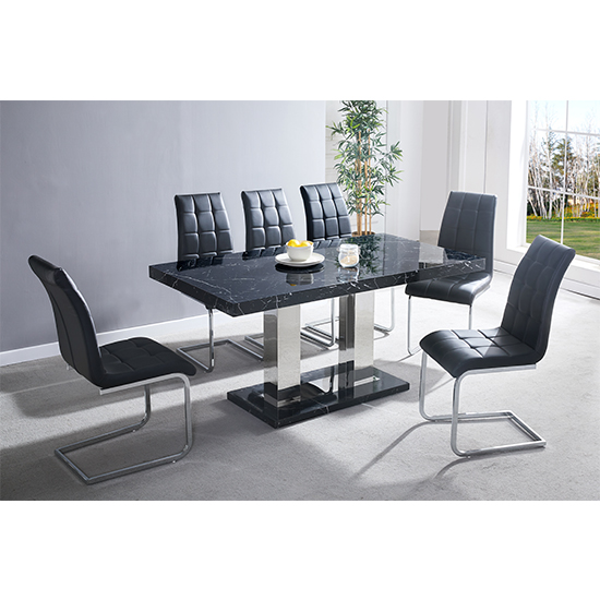 Candice Milano Marble Effect Dining Table 6 Paris Black Chairs