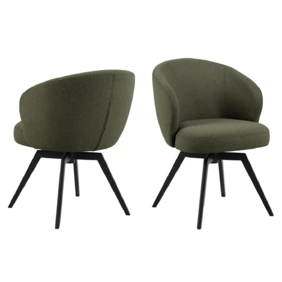 Add a touch of sophistication to your dining space with the Furniture in Fashion Denver Green Fabric Dining Chairs with Black Legs. Designed for both comfort and style, these elegant chairs feature a plush Green fabric upholstery that enhances any modern or contemporary dining setting. The sleek black legs provide a striking contrast, creating a refined and luxurious look that seamlessly fits into various interior dcors. Built for durability and everyday use, the Denver Dining Chairs offer superior support with their high backrest and cushioned seat. The sturdy black metal legs ensure long-lasting stability, while the soft fabric upholstery provides a comfortable seating experience. Whether used for daily dining or special occasions, this pair of chairs brings both functionality and elegance to your home. Enhance your dining area with the Furniture in Fashion Denver Green Fabric Dining Chairs with Black Legs, where modern elegance meets ultimate comfort for a stylish dining experience. FEATURES : Material : Fabric Finish : Green, Black This dining chair with armrests embodies a modern design without compromises Its sleek, rounded seat is wrapped in an Green fabric with a rich texture Featuring pocket springs, the chair provides great seating comfort and includes swivel and auto-return functions for easier movement with minimal effort Dining chair made of fire-resistant materials Textured fabric in Green based on recycled plastic bottles Auto-return and swivel functions for easier movement Black base made of powder coated steel Pocket springs for great seating comfort Set of Two Perfectly paired for a stylish and cohesive dining setup Premium Green Fabric Upholstery Soft, durable, and easy to maintain Sleek Black Metal Legs Offers stability with a modern touch Ergonomic High Backrest Provides excellent support for added comfort Padded Seat Cushion Ensures a comfortable dining experience Available at an affordable price Ima