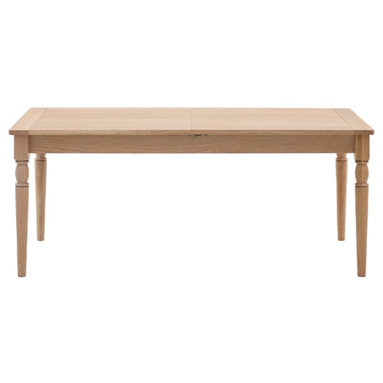 Transform your dining area with the Furniture in Fashion Elvira Wooden Extending Dining Table in Natural. Combining classic elegance with versatile functionality, this dining table is designed to adapt to your space and lifestyle. The natural wood finish and sleek design make it a perfect addition to any modern home, offering a stylish yet practical solution for family meals or entertaining guests. Its extending feature ensures that you can easily accommodate extra guests without compromising on style or space. Crafted with attention to detail, the Furniture in Fashion Elvira Wooden Extending Dining Table is built to last. The durable wood construction and smooth finish provide long-term reliability, while the extending mechanism offers convenience for larger gatherings. Whether you’re hosting a dinner party or enjoying a quiet meal, this table is sure to impress. With the Furniture in Fashion Elvira Wooden Extending Dining Table in Natural, youll enjoy a beautiful centrepiece that adapts to your needs, making every dining experience a memorable one. FEATURES : Material : Wooden Finish : Natural Offering farmhouse charm, this extending dining table is the perfect addition to any interior Featuring solid oak underframe, turned spindle legs and a grooved & planked oak top that gives a traditional and rustic feel Thanks to the easy to use metal extension pull table leaf, the table can easily be extended to seat up to 10 people Due to the handmade nature of this product colour variations may be present The natural wood finish enhances the table’s beauty and gives it a timeless, rustic appeal The extending feature allows the table to comfortably seat more people, ideal for hosting guests Made from high-quality wood, offering sturdiness and long-lasting use Simple yet elegant design that fits seamlessly into any dining room or kitchen decor The table extends to accommodate larger gatherings, making it ideal for both intimate dinners and family celeb