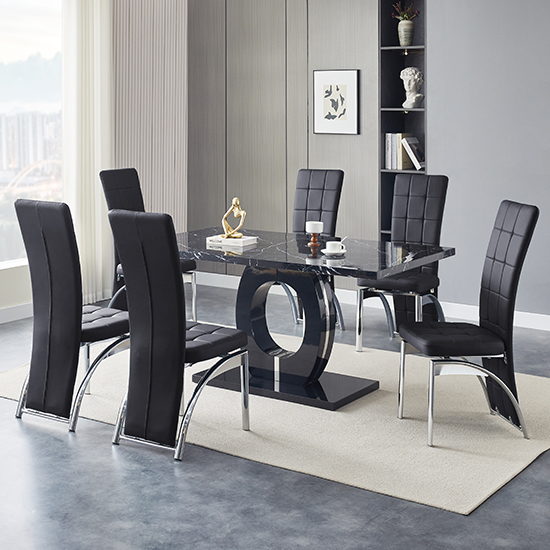 Halo Milano Effect Gloss Dining Table 6 Ravenna Black Chairs