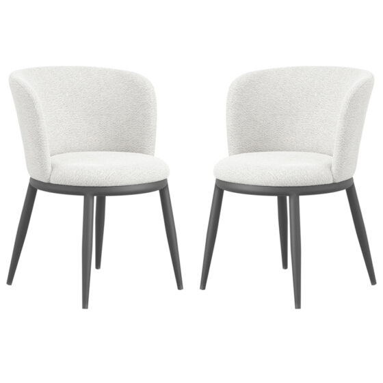 Introduce luxury and sophistication to your dining space with the Nixa Ivory Velvet Dining Chairs in Pair from Furniture in Fashion. Designed to make a striking impression, these elegant dining chairs feature plush Ivory velvet upholstery that adds depth, richness, and a touch of glamour to both modern and contemporary interiors. Perfect for stylish dining rooms or statement dining settings, the Nixa Dining Chairs combine comfort with refined design. Their supportive structure and soft velvet finish ensure an inviting seating experience for everyday dining as well as special occasions, making them a versatile and elegant addition to your home. The Nixa Ivory Velvet Dining Chairs in Pair by Furniture in Fashion deliver the perfect combination of luxury, comfort, and modern design. With their plush velvet upholstery and supportive construction, they create an inviting and stylish seating solution that elevates any dining space. FEATURES : Material : Velvet Finish : Ivory What truly sets the Nixa Dining Chair apart is its exceptional design The Ivory metal legs, angular yet graceful, provide a sturdy foundation while seamlessly complementing any interior aesthetic The subtle curve of the backrest adds a touch of fluidity, inviting you to settle in and savour your dining experience Elevate your dining space with this modern masterpiece, where style meets comfort in perfect harmony Ivory Velvet Upholstery Soft, luxurious fabric adds a premium feel Comfortable Padded Seating Designed for relaxed and supportive dining Supportive Backrest Enhances comfort during extended seating Sturdy Chair Construction Built for durability and everyday use Available at an affordable price Images shown are for illustrative purposes only DIMENSIONS : Height : 740mm Width : 560mm Depth : 580mm