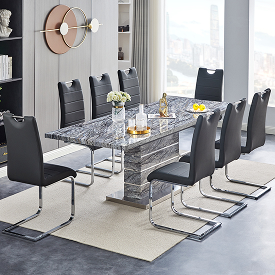 Parini Large Extending Melange Dining Table 8 Petra Black Chairs