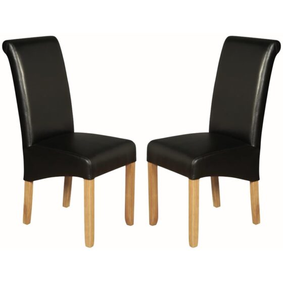 Elevate your dining experience with the Seguin Black Leather Dining Chairs with Wooden Legs in Pair from Furniture in Fashion. These sophisticated dining chairs combine timeless black leather upholstery with sturdy wooden legs, creating a perfect blend of style and durability. Designed to complement both modern and classic dining spaces, the Seguin chairs bring a touch of elegance and comfort to every meal. Crafted with attention to detail, these chairs offer ergonomic support and plush cushioning, ensuring comfort during long dinners or casual gatherings. The solid wooden legs provide reliable stability, while the sleek black leather adds a luxurious finish thats easy to maintain and built to last. Upgrade your dining room with this stylish and practical seating solution. Add a touch of class and comfort to your dining area with the Seguin Black Leather Dining Chairs with Wooden Legs in Pair by Furniture in Fashion. Combining premium materials with elegant design, these chairs are the perfect addition for stylish and practical dining seating. FEATURES : Material : Leather, Wooden Finish : Black Pair of Dining Chairs : Two matching chairs ideal for creating a cohesive dining setup Premium Black Leather Upholstery : Durable and stylish, offering a sophisticated look and easy maintenance Sturdy Wooden Legs : Solid construction ensures excellent stability and longevity Ergonomic Design : Provides comfortable seating support for extended dining experiences Plush Padding : Soft cushioning adds extra comfort to every seat Versatile Style : Sleek black leather and natural wood tones suit a variety of interior themes Easy to Clean : Leather surface can be wiped down quickly, perfect for busy households Durable Build Quality : Designed to withstand daily use with lasting appeal Available at an affordable price Images shown are for illustration purpose only DIMENSIONS : Height : 106cm Width : 45cm Depth : 45cm